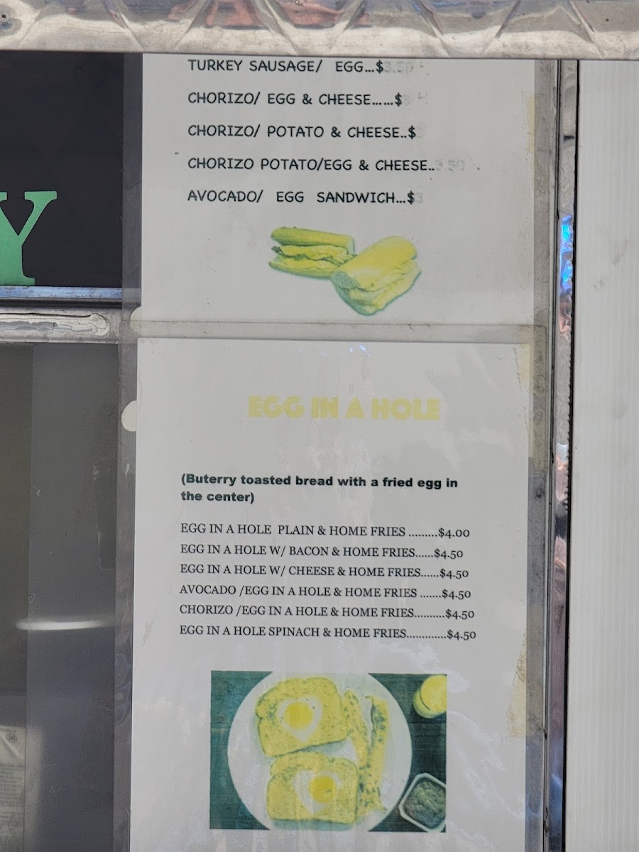 Sausage, 2 eggs, cheese home fries, and toast.